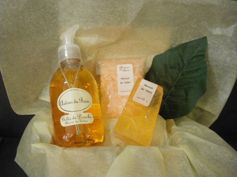 Abricot du Valais, 1 tranche de savon Vanille Bourbon et 1 bouteille