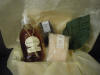 de bain, un savon en tranche entière, un flacon d'huile de massage et bain, un fondant de bain et